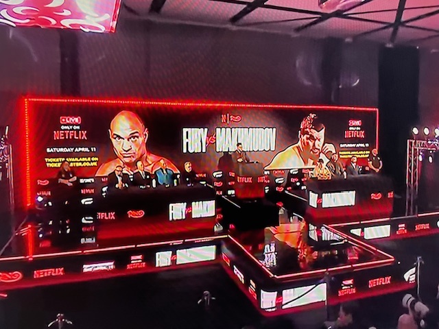 At this media return, resplendent in a powder blue waistcoat with matching tie with the ‘N’ Netflix logo on, Fury (34-2-1, 24 KOs) looked refreshed, fit and was his usual entertaining and captivating self. He was sure on verbal form !