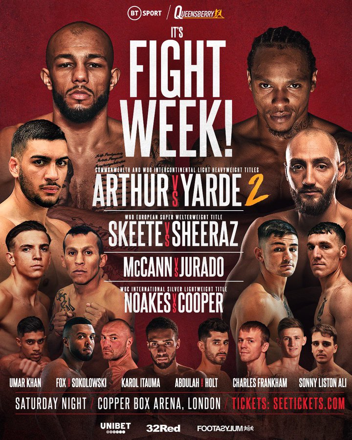 The Probellum card will be shown on subscription channel Premier Sports2 and Boxnation available on the Sky platform. Start time Saturday 16:00. All timings GMT (UK time).