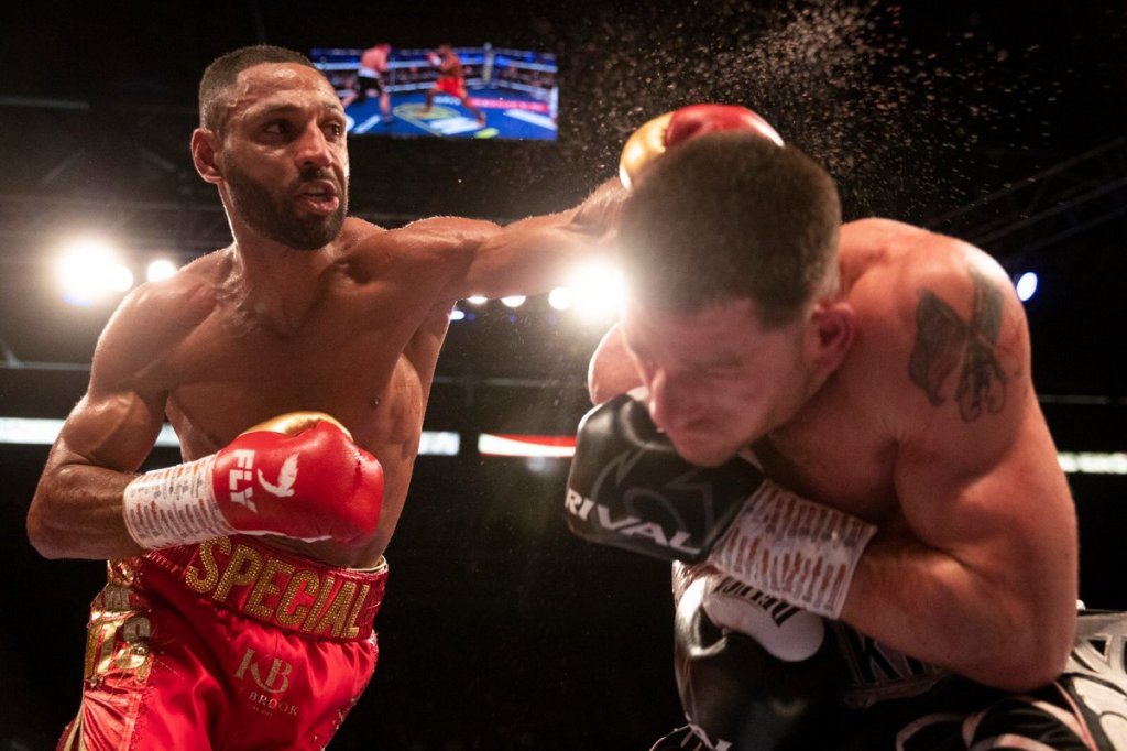 Kell Brook loads up on Mark DeLuca Photo by Matchroom Boxing